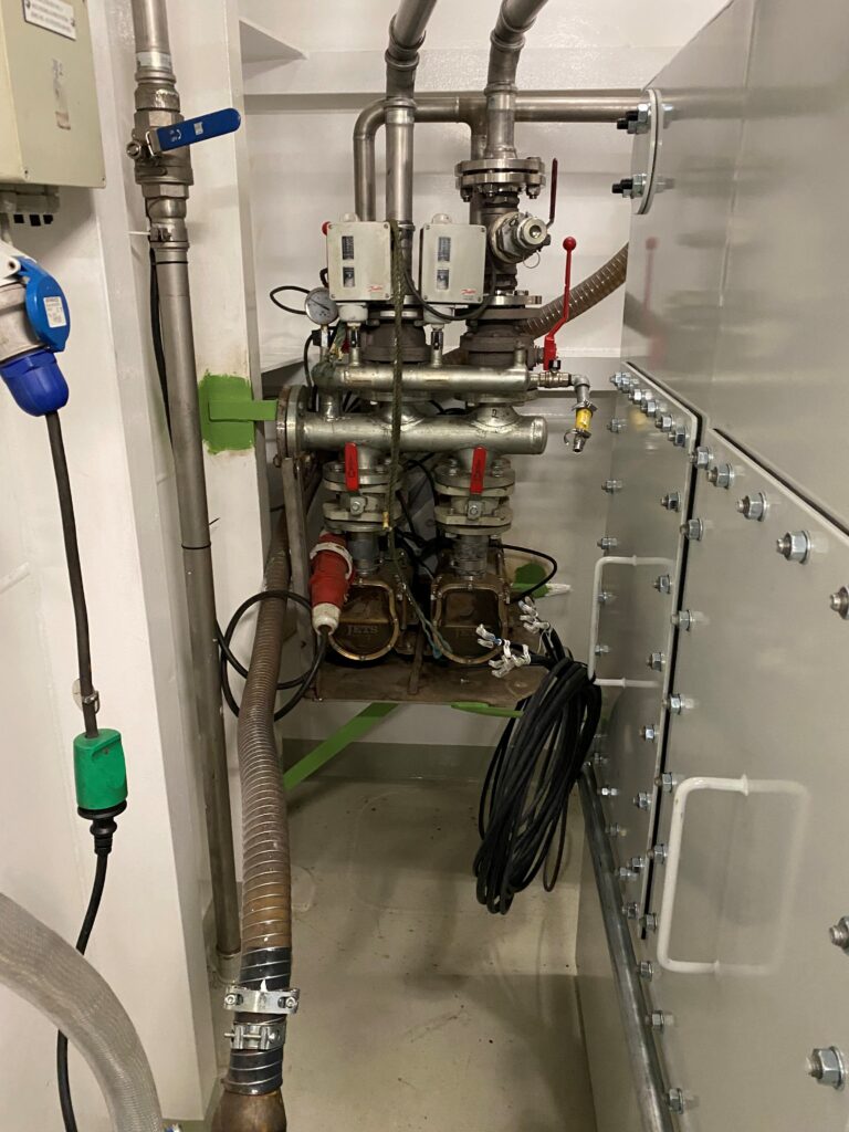 Instead, G&O Bioreactors delivered the plant in four modules, each weighing around 500 kg. The full system was assembled and tested in Vordingborg, Denmark, demonstrated to the customer, then dismantled and transported to the yard.
